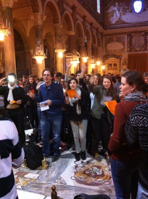 Nous sommes de retour en France. Les deux derniers jours ont été particulièrement chargés mais je suis sûre que vous voulez tous savoir comment s'est passé notre réveillon. Alors voilà, le 31 à 23h, nous nous sommes tous rassemblés dans l'église Santa Prisca (notre paroisse d'accueil) pour une prière pour la paix. Nous avons même pu proposer une prière d'intercession en Basque ! A minuit, nous sommes sortis pour la nouvelle année souhaitée au son des cloches romaines.