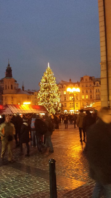 Aujourd'hui nous avons eu la prière du matin et une discussion en groupe sur le thème du "goût de la vie" et des paroles de Jésus "vous êtes le sel de la terre". Dans mon groupe, nous sommes 7 Français, 1 Ukrainien et 3 Polonaises. Après avoir bravé le froid, nous avons eu la prière du milieu du jour dans une église aux bancs chauffés : Alléluia !!! L'après midi, nous avons visité un peu le centre de Prague en goûtant à une spécialité locale : Trdelnik (demain, il y aura une photo de cette spécialité…). C'est une brioche enroulée et cuit au feu de bois. Nous avons commencé à faire des emplettes au marché de Noël aussi. :-D Nous avons fini notre journée avec le repas et la prière bien évidemment.