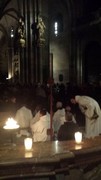 Pour une première avec Taizé nous avons découvert une ambiance chaleureuse ponctuée de chants durant ce trajet en bus. Malgré la distance le temps passe vite et s'enrichit de moments d'échanges et de prières. Nous avons vécu un moment "historique" : une messe a été célébrée dans le bus !! Cela augure de belles choses pour la suite...